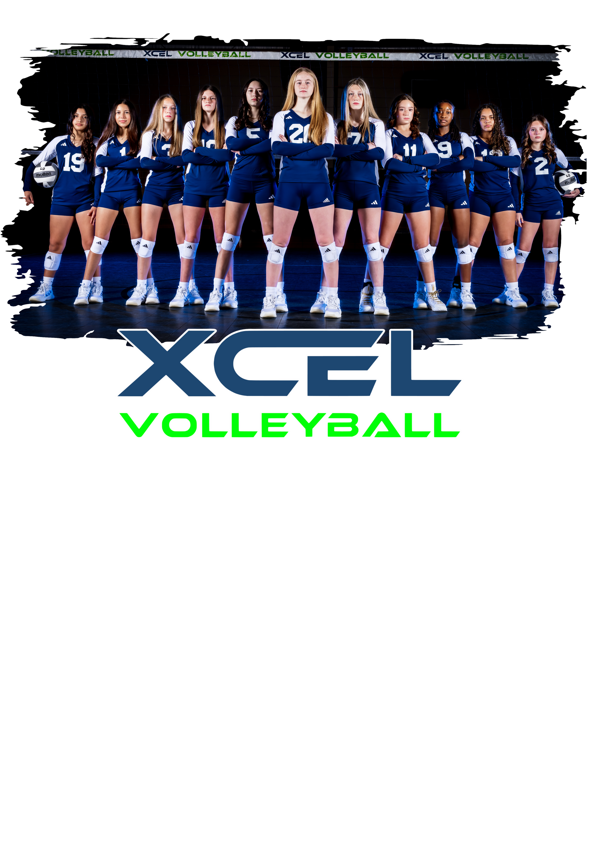 XCEL VOLLEYBALL TEAM PICTURE ON WHITE.